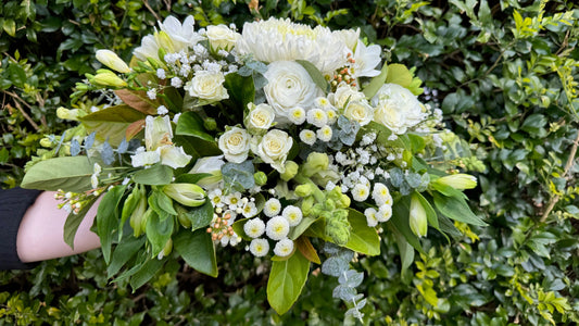 Our petite seasonal casket spray includes the freshest blooms of the season. This design is suitable for smaller caskets or as an alternative to a wreath on a large casket.