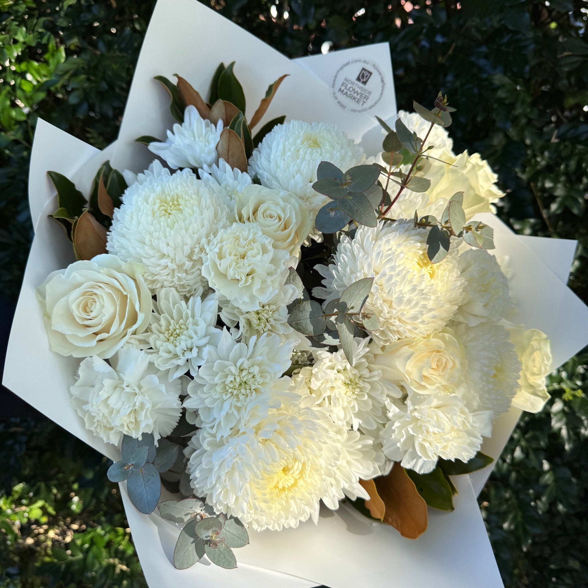 Brighten someone's day with our deluxe Pom Posy! Each bouquet is hand-made with love and includes roses, Pom chrys, carnations and a variety of seasonal blooms and foliage. Tied with a charming bow, it's the perfect floral gift.