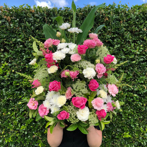 A large ceremony arrangement, suitable for churches and school stages. Designs are made from the best and freshest blooms of the day to match your selected colour palette.