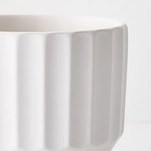The Capra Pot in white, features a narrowing base that adds a touch of elegance to its design. Its compact yet stylish structure makes it perfect for housing petite plants or adding subtle charm to any space.