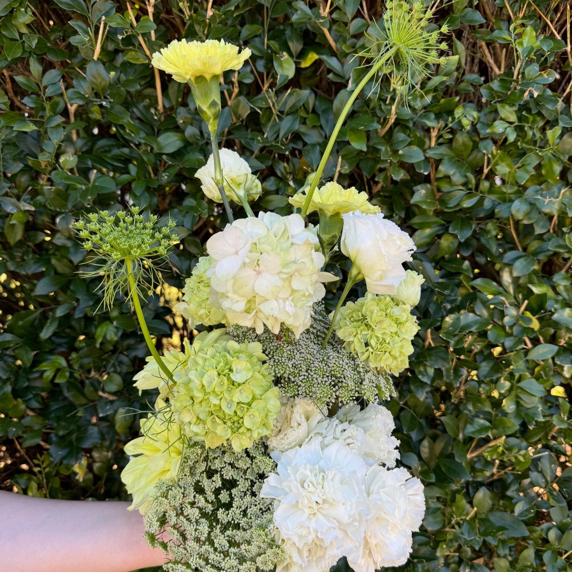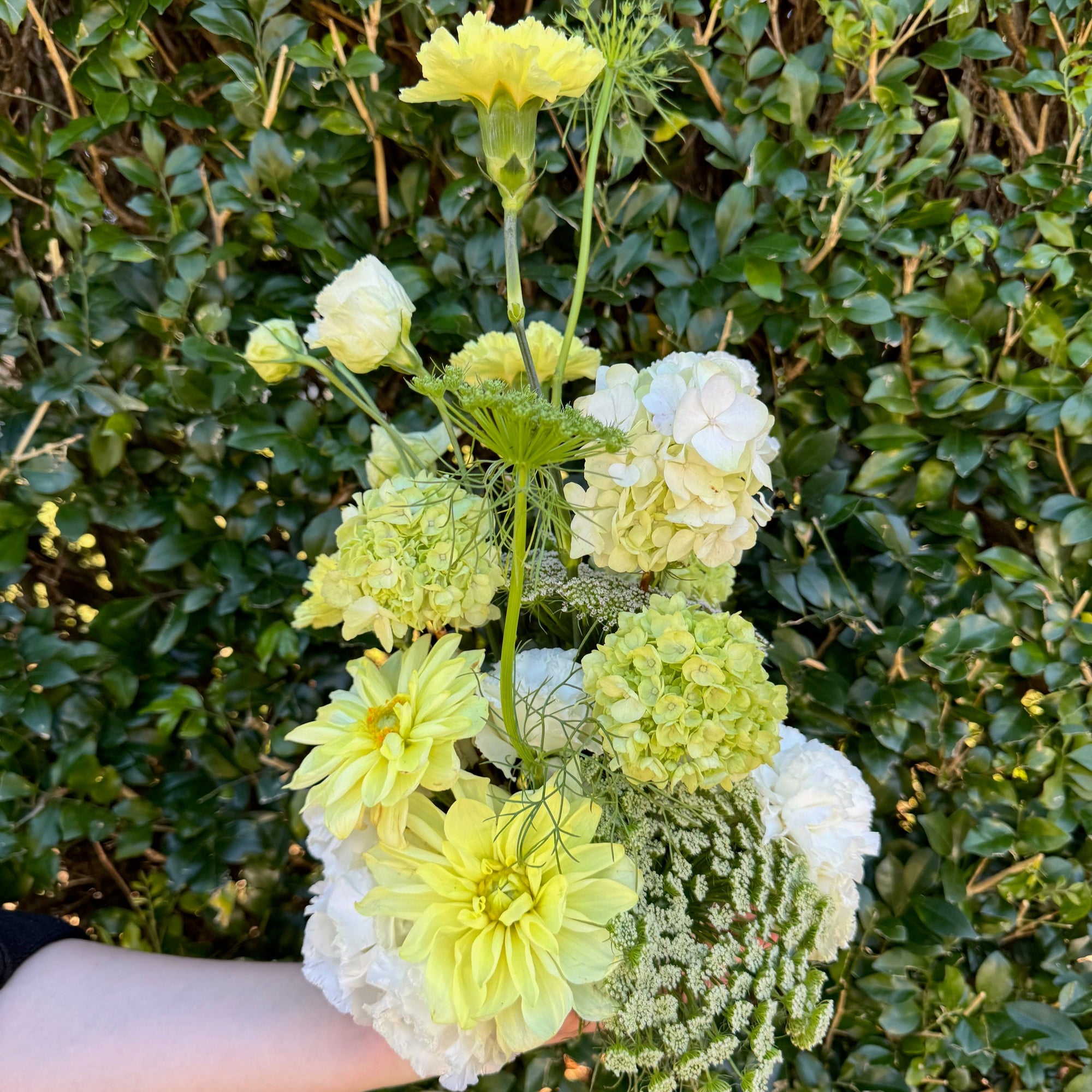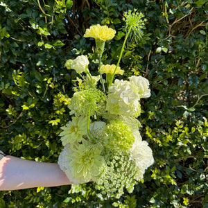 Elevate your wedding or dinner party with the Lemon Sorbet Flower Cloud, a contemporary floral arrangement designed to create a stunning tablescape.