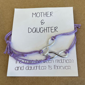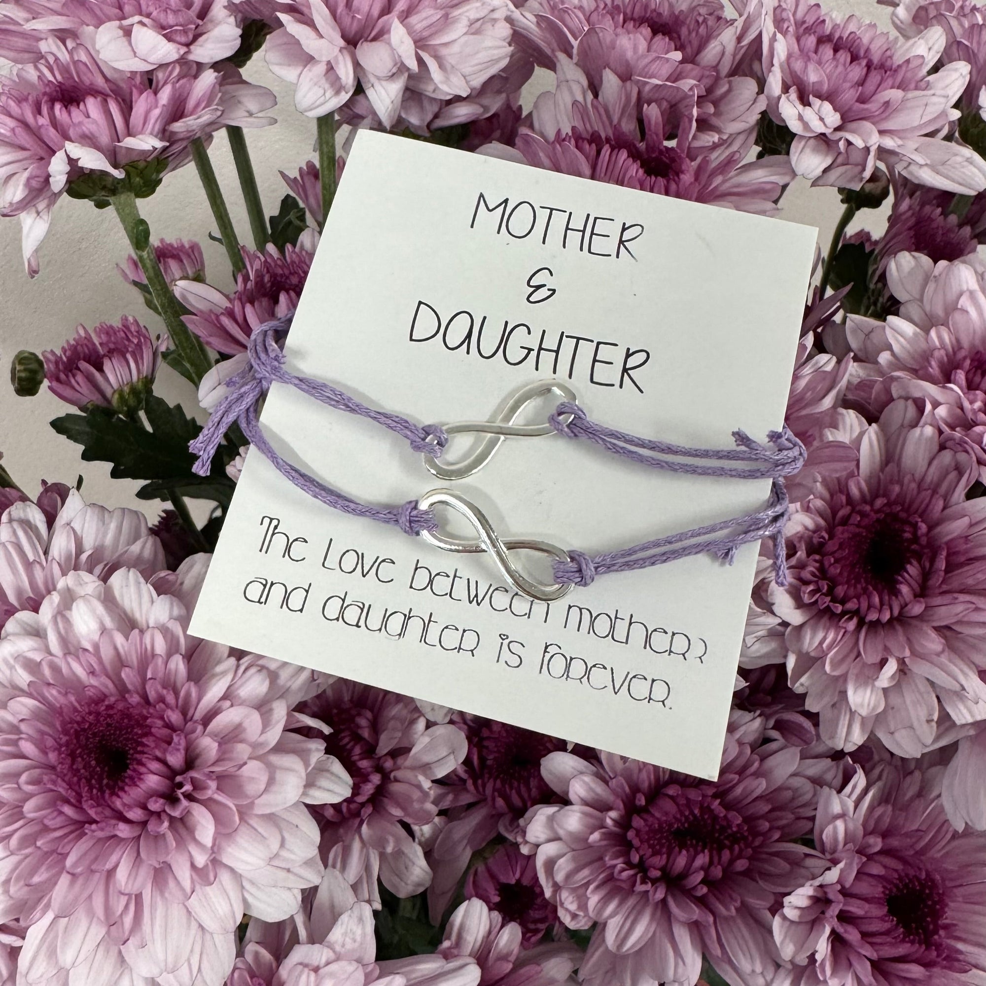 Enhance the special bond between a mother and daughter with our matching bracelet set featuring an infinity symbol. Symbolizing eternal love and connection. A perfect edition to any gift.